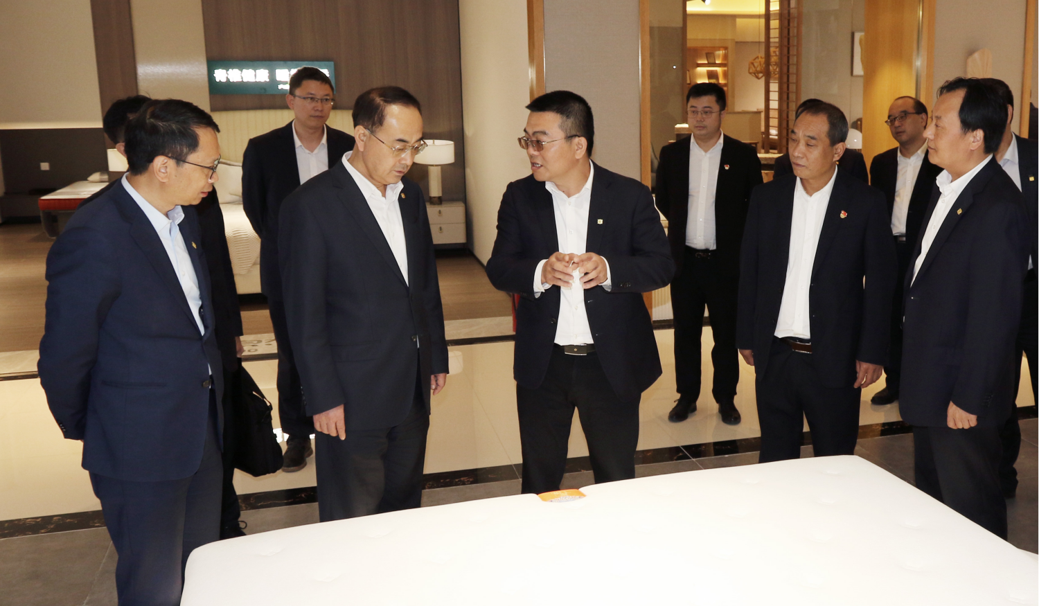 孫永才董事長一行先后察看了公司床墊生產車間、定制家具生產車間和公司文化與產品展廳,詳細詢問了公司面臨的市場環(huán)境和生產經營情況、公司發(fā)展戰(zhàn)略及實施推進情況,詳細察看了公司生產現(xiàn)場管理和安全生產防護措施情況,詳細了解了公司技術研究、產品開發(fā)、銷售渠道及品牌推廣等方面的工作開展情況。