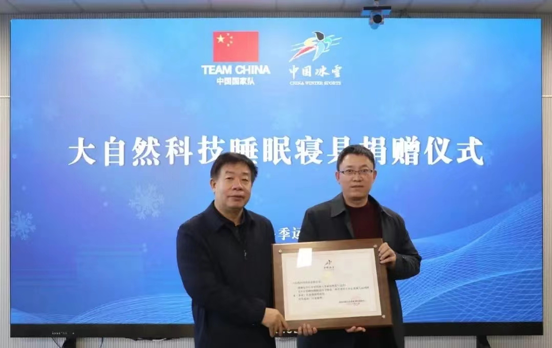 12月2日,國家體育總局冬季運(yùn)動管理中心在綜合訓(xùn)練館為大自然床墊舉行授牌儀式,以此感謝大自然用心制造的精品國貨為冰雪運(yùn)動員的睡眠保駕護(hù)航的責(zé)任擔(dān)當(dāng)。