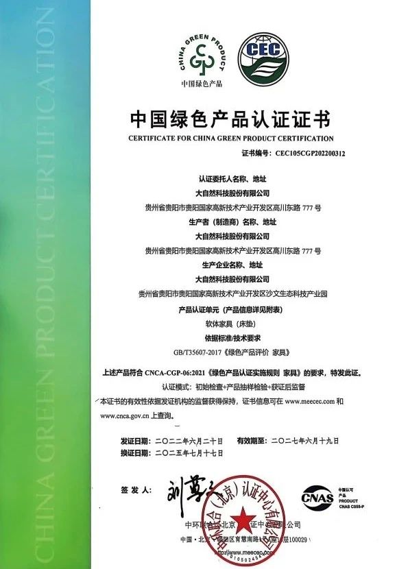 大自然的“綠色基因”貫穿產(chǎn)品全生命周期。我們的生產(chǎn)基地是國家級“綠色工廠”,從生產(chǎn)過程、能源管理到廢棄物處理,全程貫徹綠色理念。大自然床墊產(chǎn)品連續(xù)多年獲得中國綠色產(chǎn)品認(rèn)證,這是對我們在環(huán)保道路上持之以恒的最佳見證。