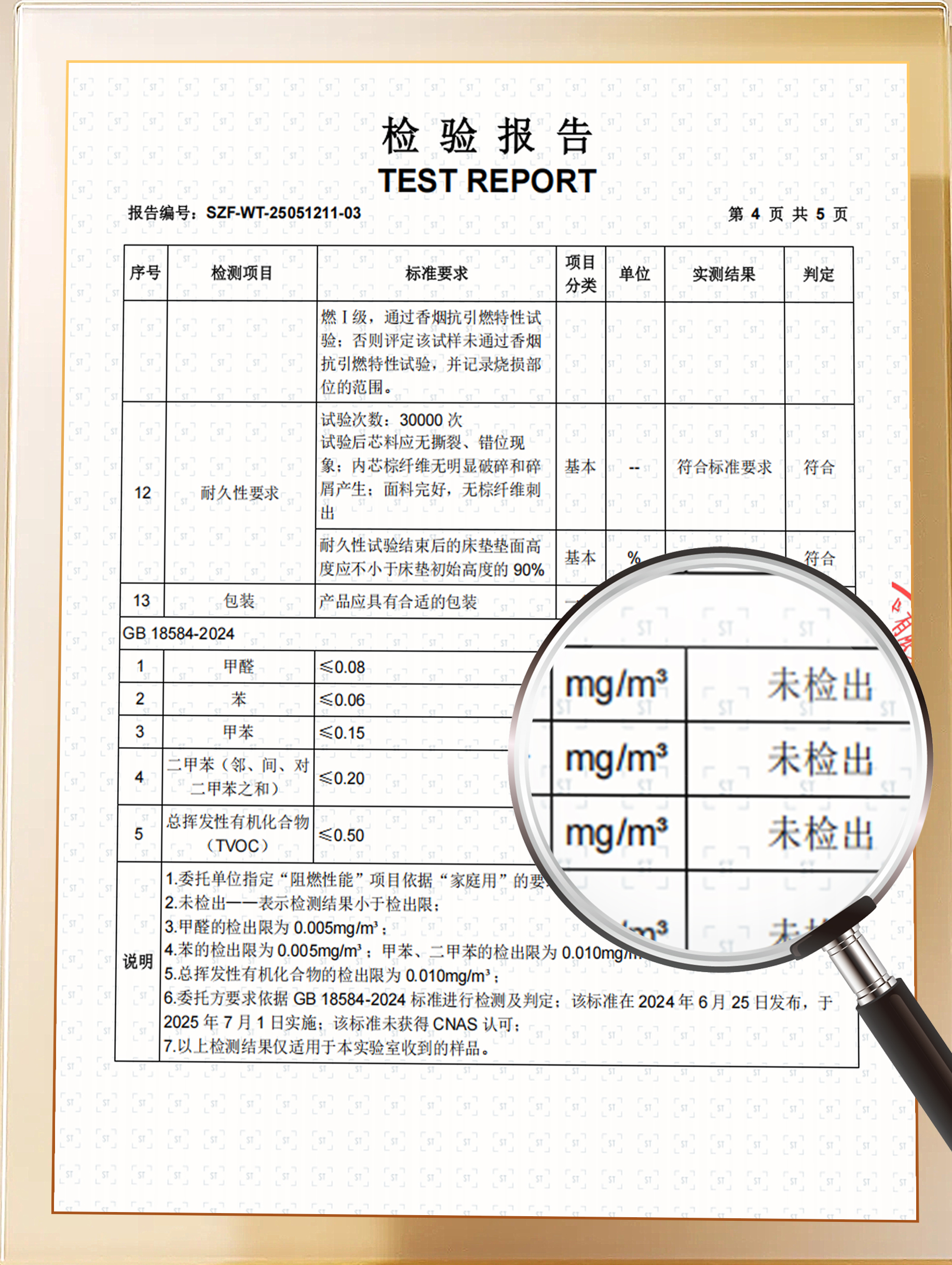 它代表著在目前精密的檢測儀器和嚴(yán)格的檢測方法下,大自然床墊的有害物質(zhì)含量低到儀器都無法捕捉!這不僅遠(yuǎn)超新國標(biāo)的最高要求,更是達(dá)到了當(dāng)前檢測技術(shù)所能判定的“極限環(huán)保”水平。